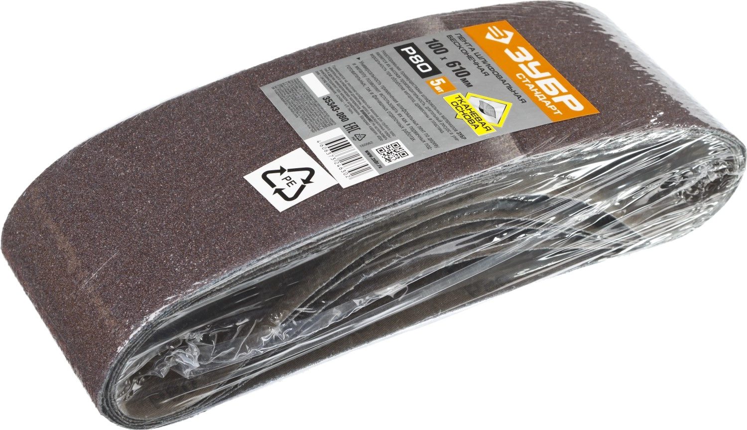 ПроизводителиЛента шлифовальная 100х610 мм, P80, велкро осн., 5 шт. (35343-080) ЗУБР