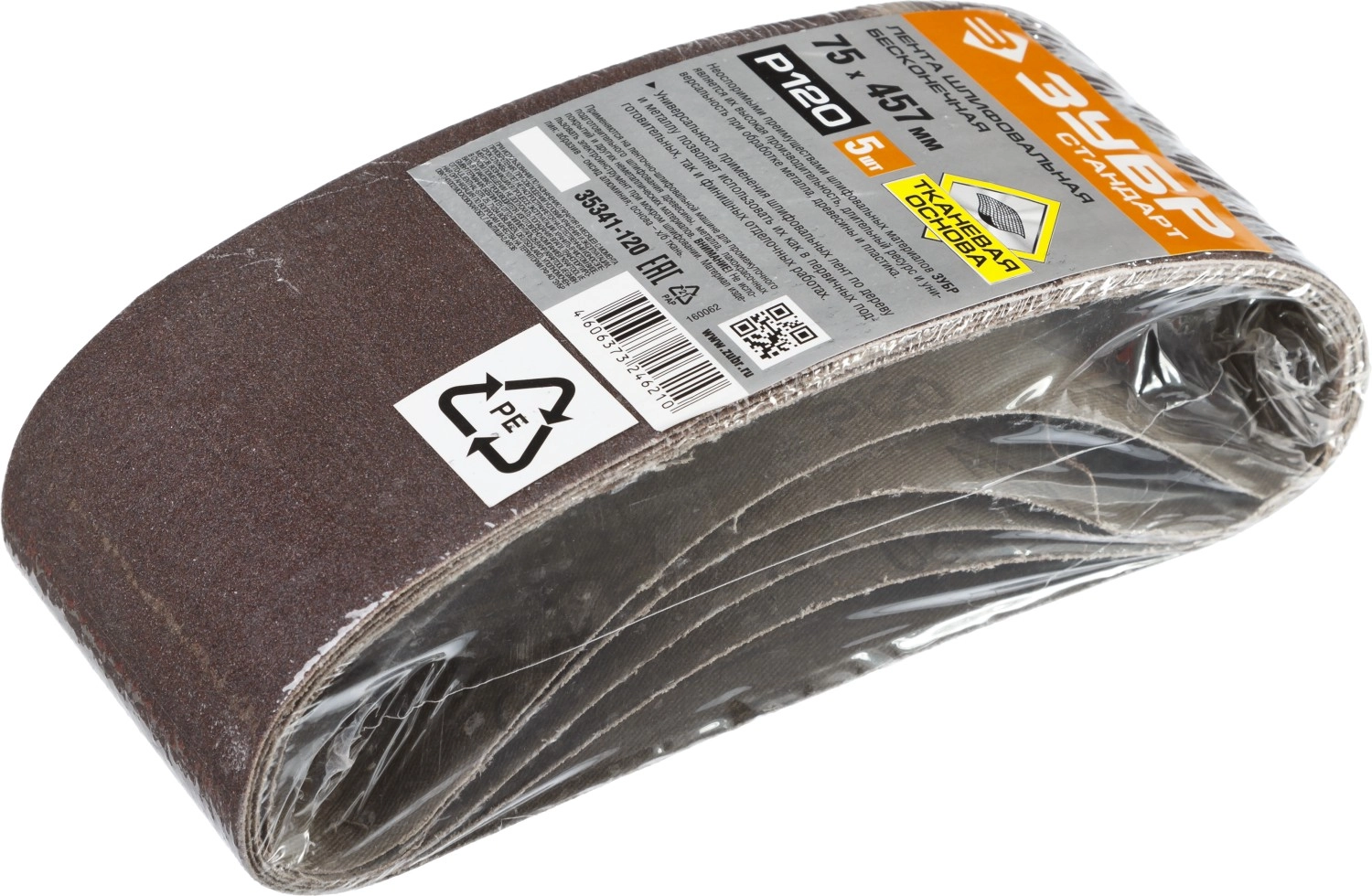 ПроизводителиЛента шлифовальная 75х457 мм, P120, велкро осн., 5 шт. (35341-120) ЗУБР