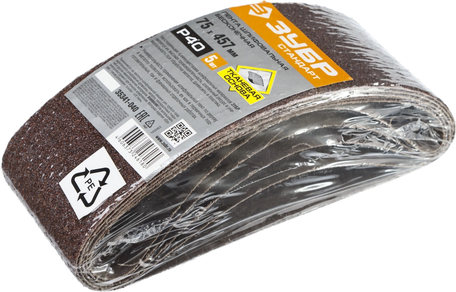 ПроизводителиЛента шлифовальная 75х457 мм, P40, велкро осн., 5 шт. (35341-040) ЗУБР