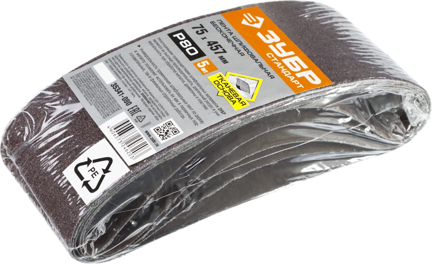 ПроизводителиЛента шлифовальная 75х457 мм, P80, велкро осн., 5 шт. (35341-080) ЗУБР