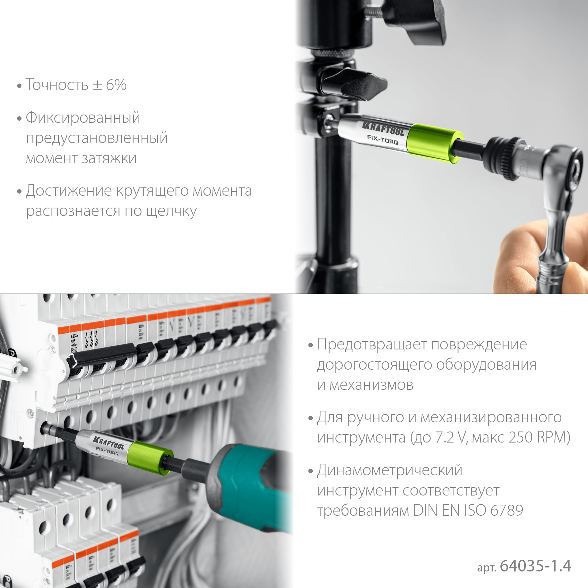 ПроизводителиАдаптер (держатель) для бит динамометрический, 1.4 Нм "FIX-TORQ" (64035-1.4) KRAFTOOL