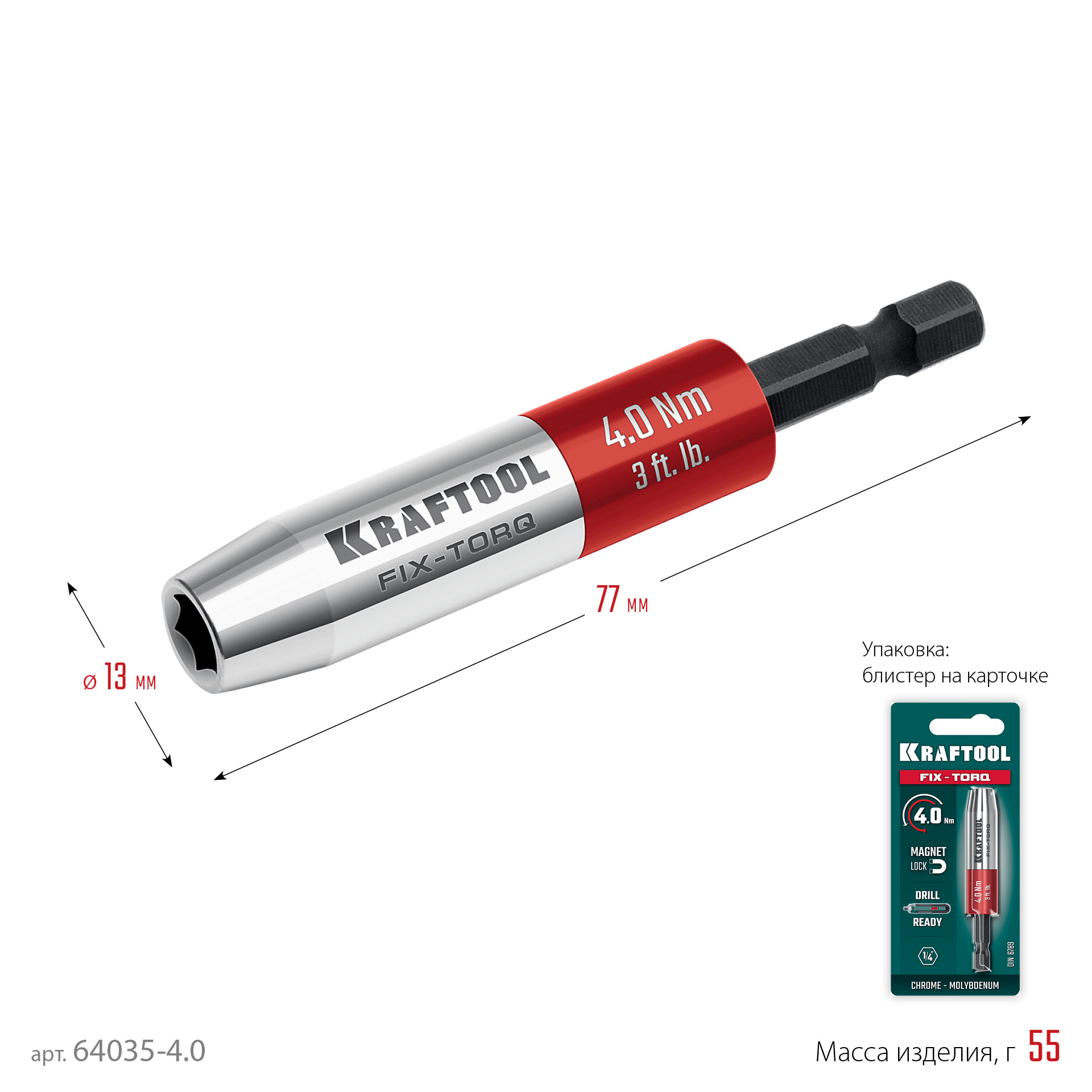 ПроизводителиАдаптер (держатель) для бит динамометрический, 4.0 Нм "FIX-TORQ" (64035-4.0) KRAFTOOL