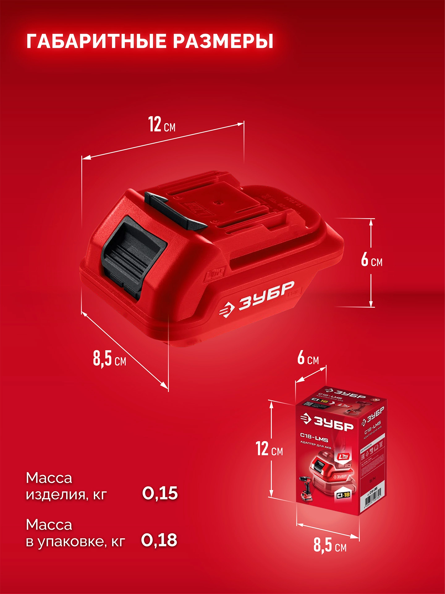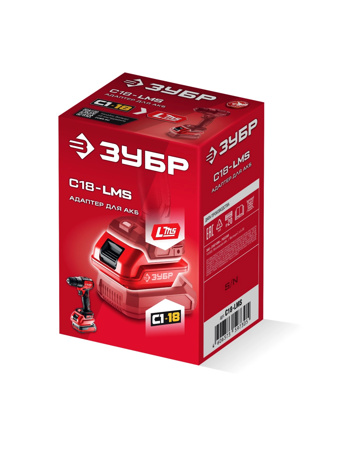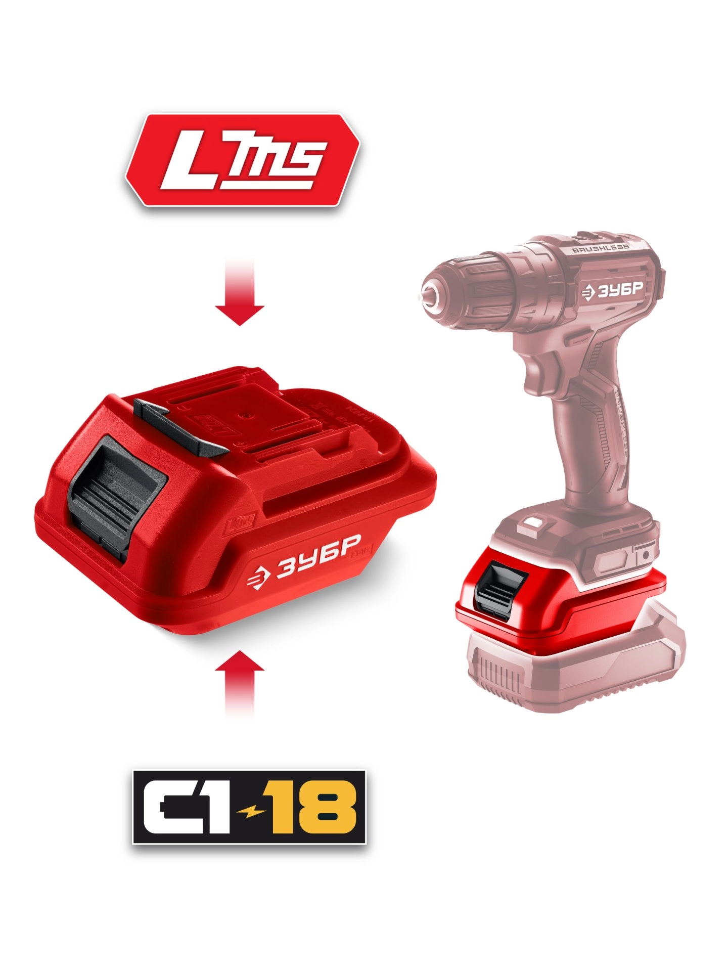 ПроизводителиАдаптер для АКБ С1-18 под инструмент LMS (С18-LMS) ЗУБР