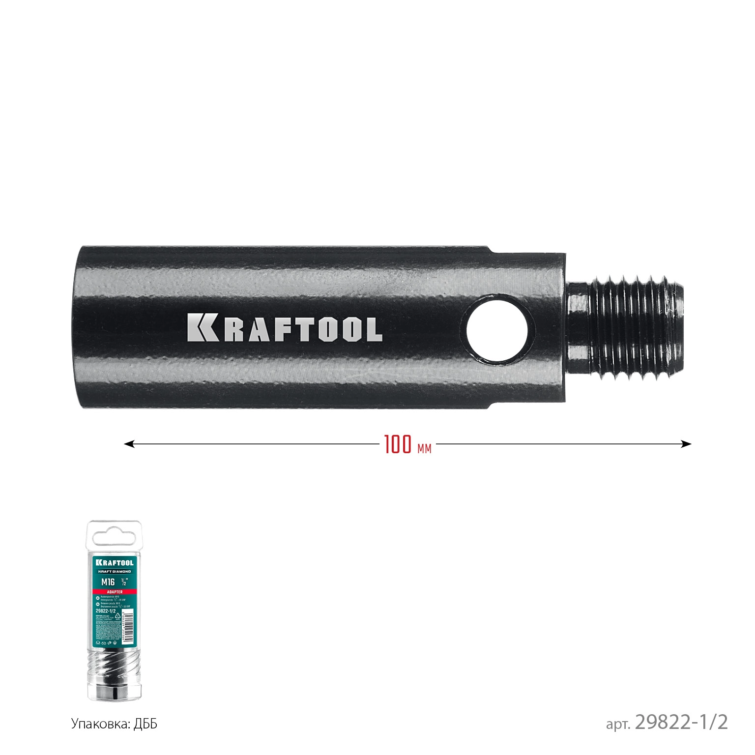 ПроизводителиАдаптер для алмазных коронок (сверл трубных), М16 (нар.) - 1/2"- 20 UNF (внутр.)(29822-1/2) KRAFTOOL