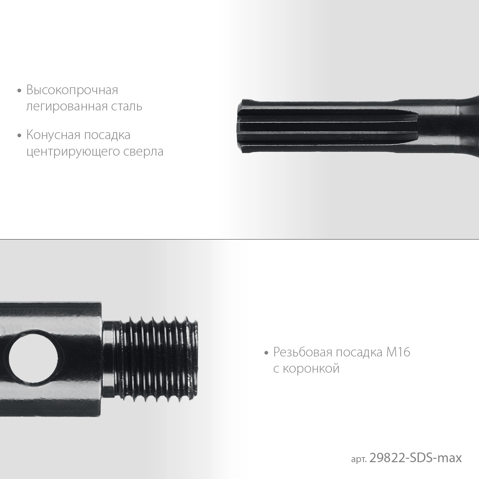 ПроизводителиАдаптер для алмазных коронок (сверл трубных), SDS-max - М16 (29822-SDS-max) KRAFTOOL