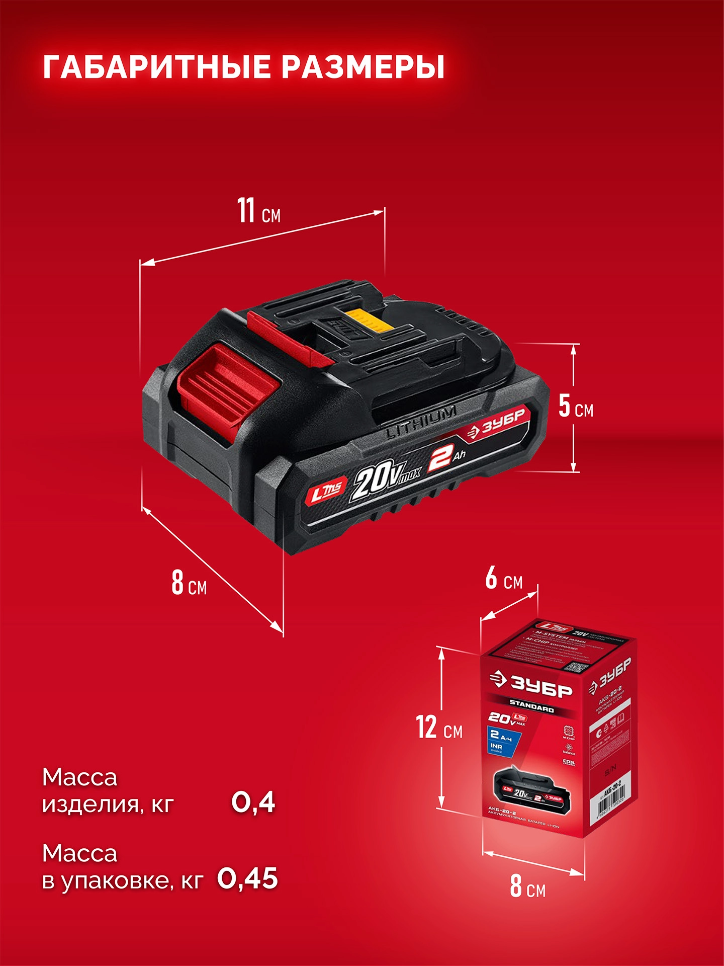 Емкости 2.0 Ач достаточно для непродолжительных работ без большой нагрузки. Литий-ионная технология ЗУБР следующего поколения: