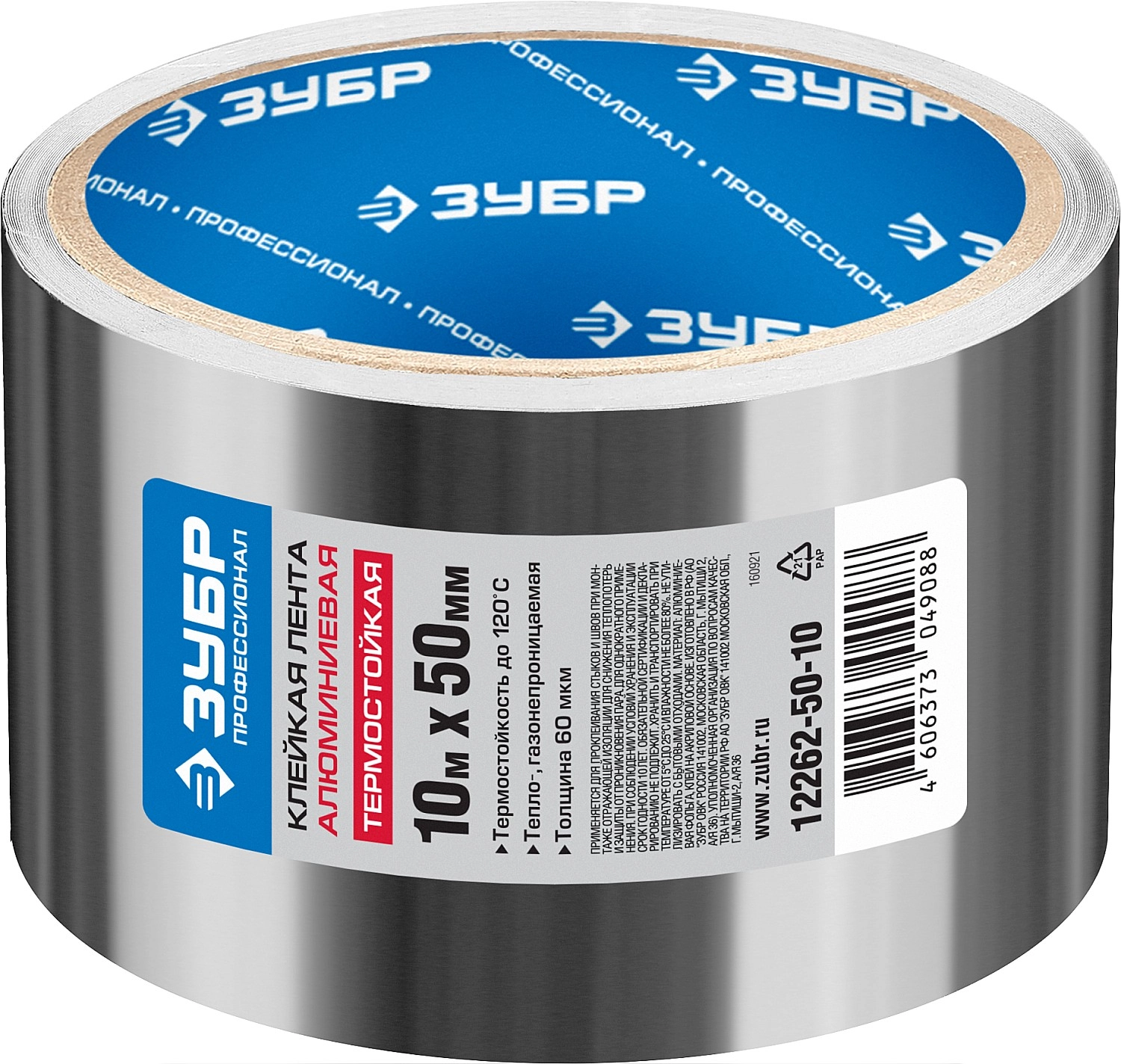 ПроизводителиЛента клеящая алюминиевая 50мм/10м, 60мкм "Профессионал" (12262-50-10) ЗУБР