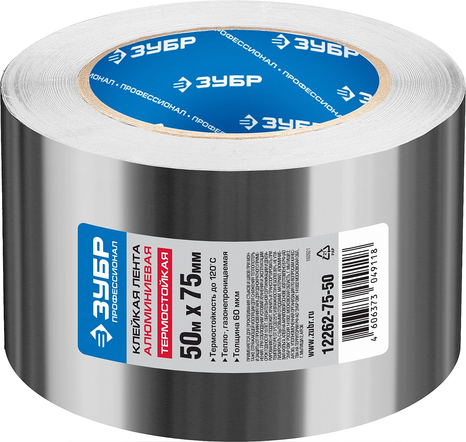 ПроизводителиЛента клеящая алюминиевая 75мм/50м, 60мкм "Профессионал" (12262-75-50) ЗУБР