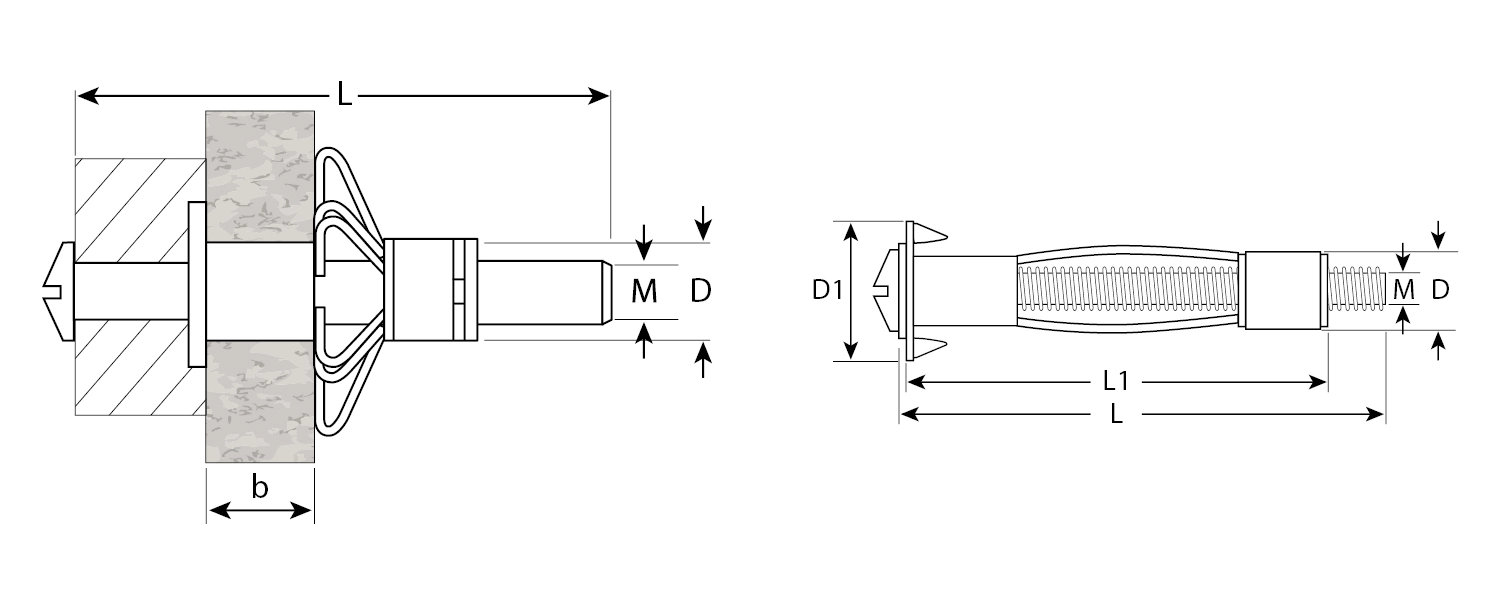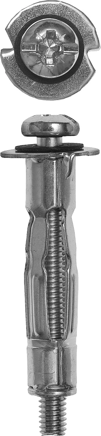 Анкер устанавливается в предварительно просверленное отверстие. При закручивании винта происходит раскрытие сегментов анкера в виде зонта, благодаря чему происходит фиксирование анкера и увеличивается площадь контакта в пустотелом материале;