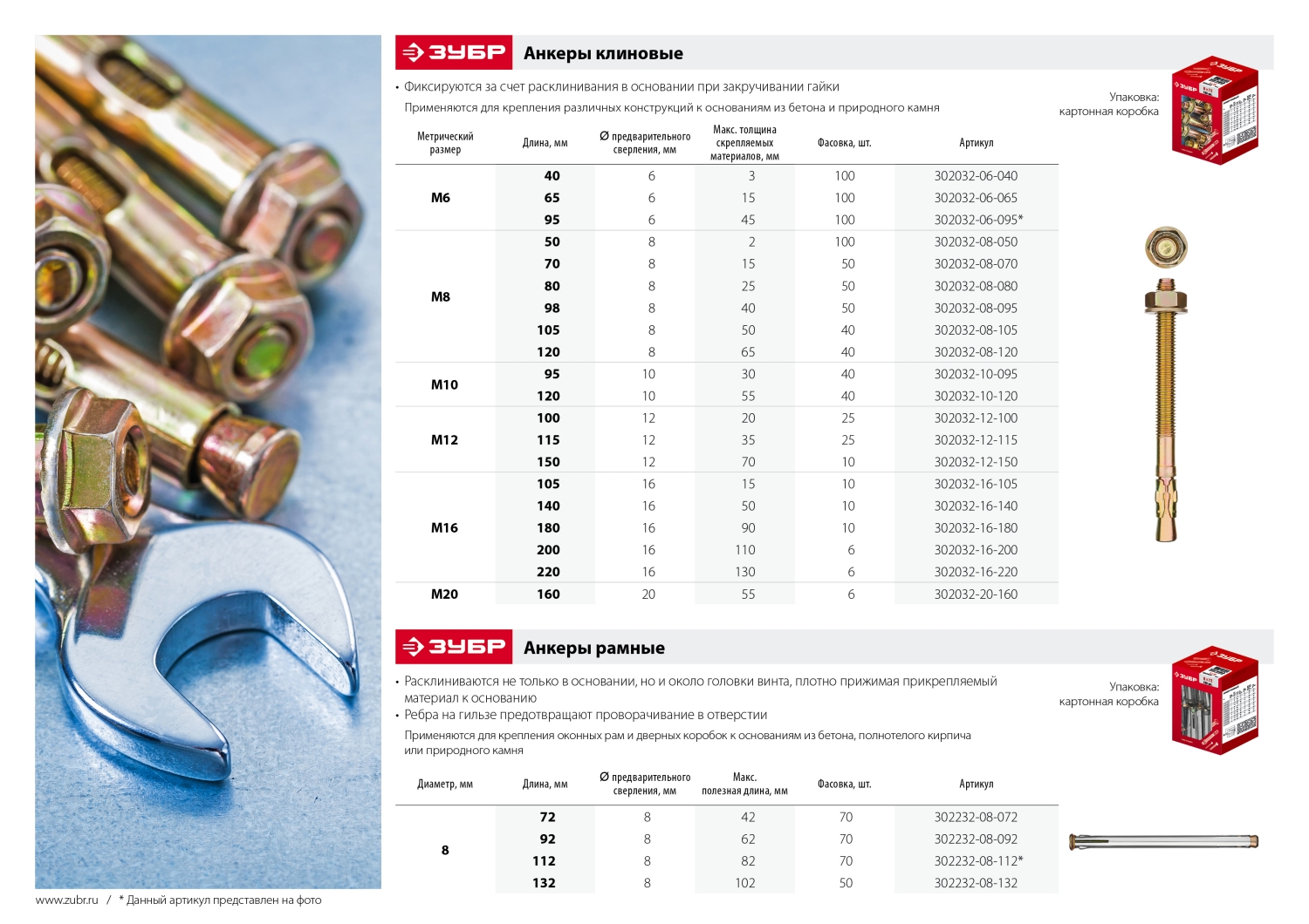 ПроизводителиАнкер клиновой М12x150 мм, 10шт. (302032-12-150) ЗУБР