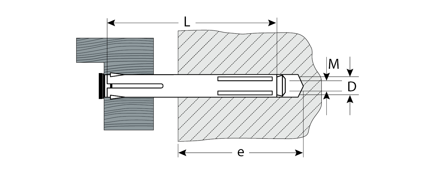 Анкер расклинивается не только в основании, но и около головки винта, плотно прижимая прикрепляемый материал к основанию