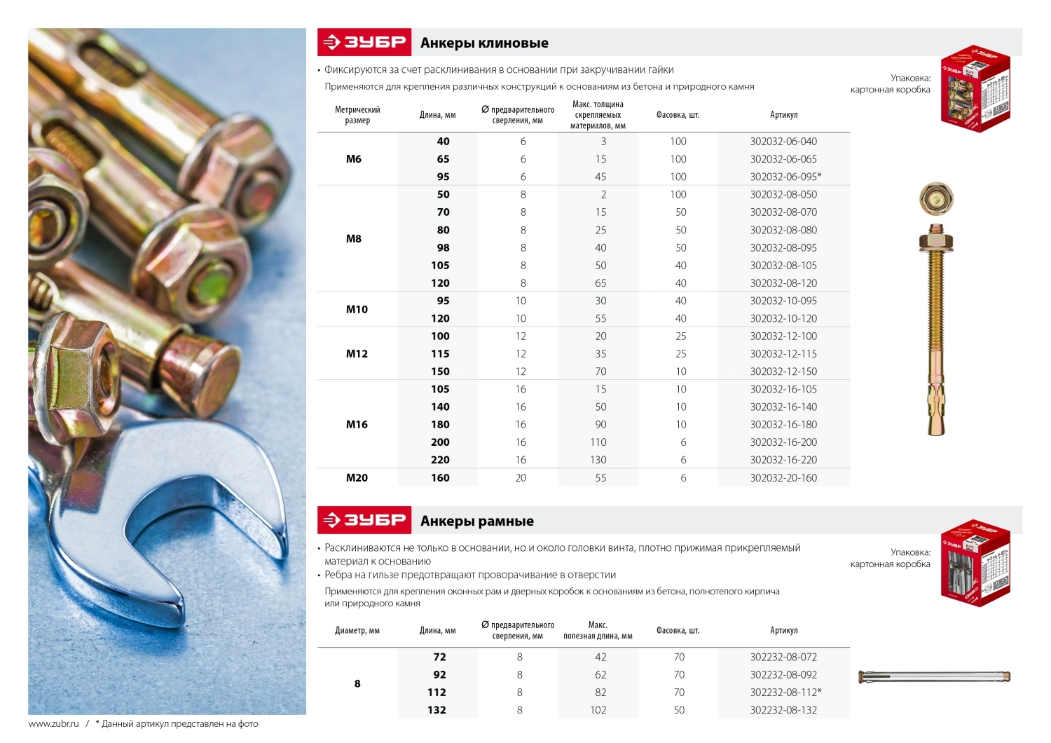 ПроизводителиАнкер рамный металл. Ø 8x92мм, 70шт. (302232-08-092) ЗУБР