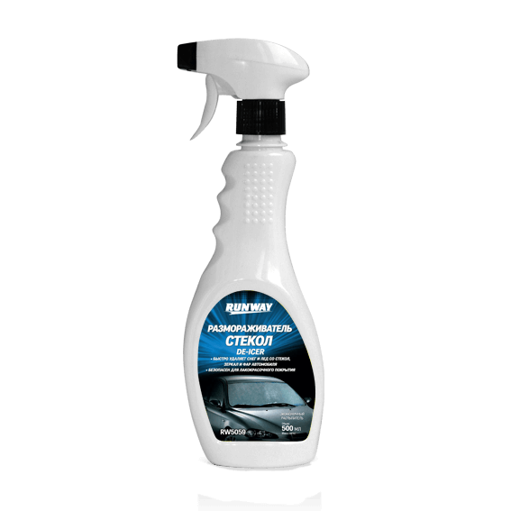Универсальный размораживатель RUNWAY для автомобильных стекол, зеркал, замков, а также других деталей, подвергающихся обледенению. Быстро и эффективно размягчает и растворяет снег и лед. Предотвращает появление царапин на стекле при удалении снега и льда стеклоочистителями и скребком. Препятствует образованию наледи. Не содержит растворитель. Безопасен для лакокрасочного покрытия автомобиля, дверных и оконных уплотнителей! Преимущества: Распылите средство на обледенелые поверхности на расстоянии 30см, подождите 15 секунд. Удалите подтаявший лед, включив дворники или воспользуйтесь скребком. Мягкой тканью удалите состав распыленный на лакокрасочное покрытие автомобиля.Производитель: ЗАО ТК «ПОИСК», ул. Магнитогорская, д. 51 Ж, офис 344 (3 этаж), г. Санкт-Петербург, РФ