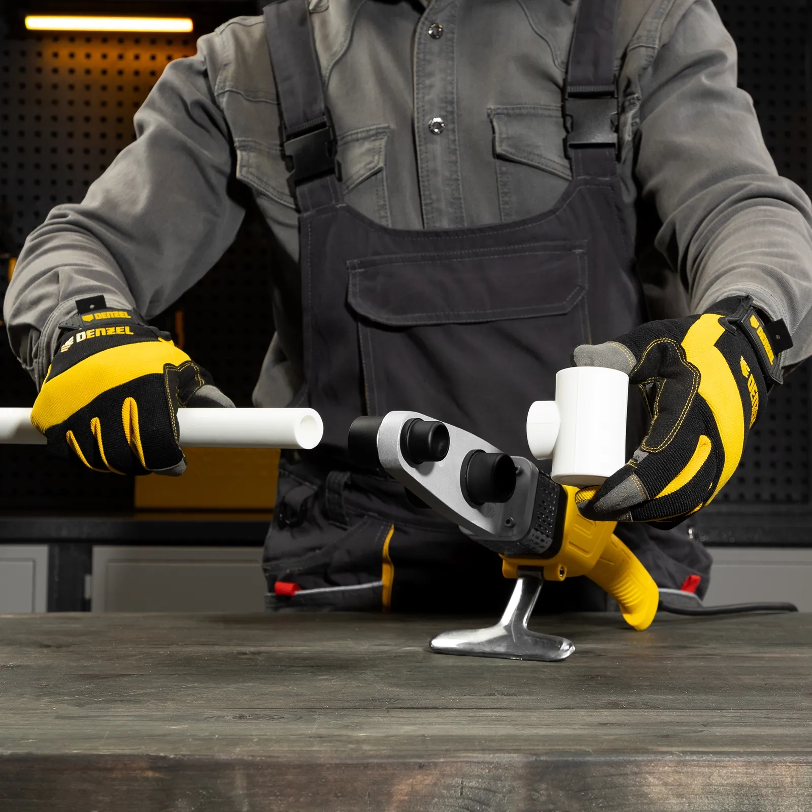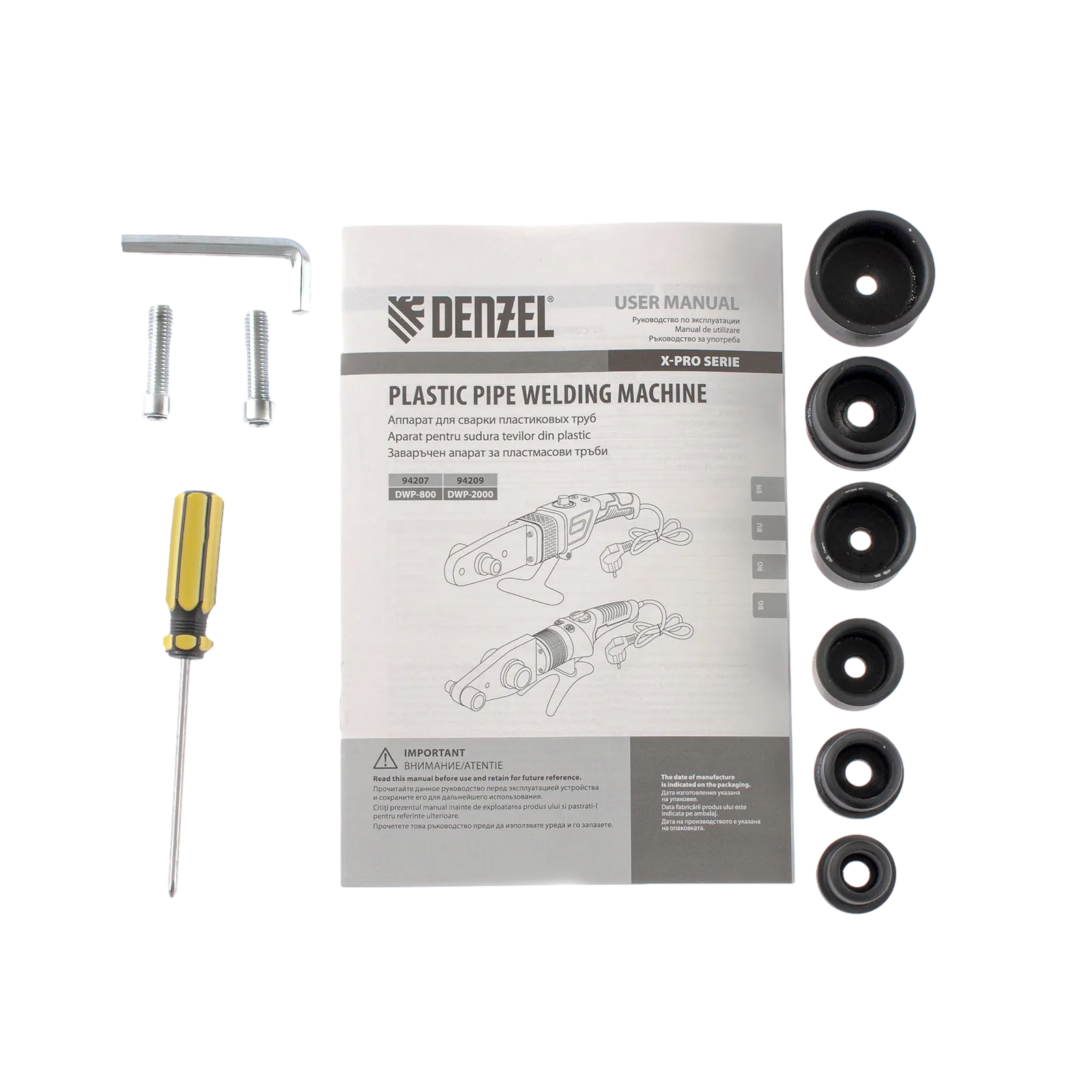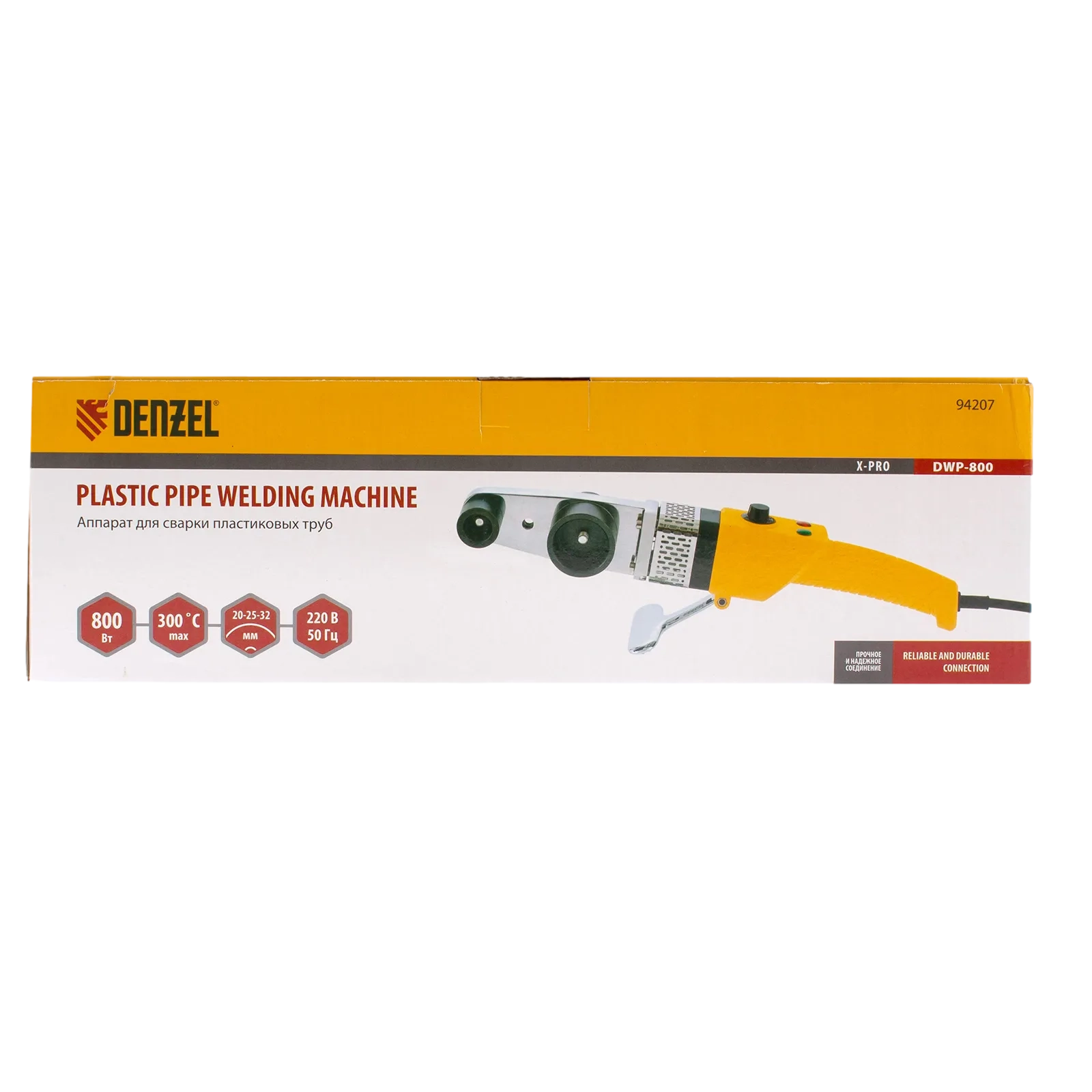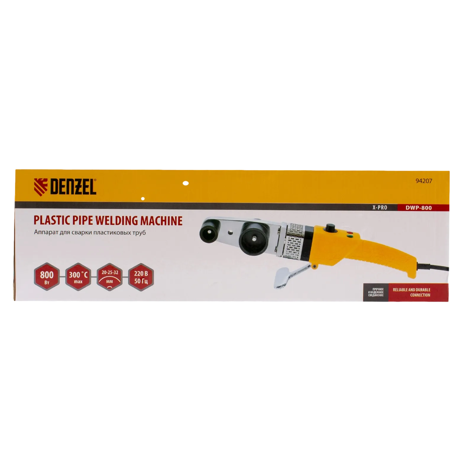 ПроизводителиАппарат для сварки пласт. труб DWP-800, Х-PRO, 800Вт, 300 град.,компл насадок, 20 - 32 мм Denzel