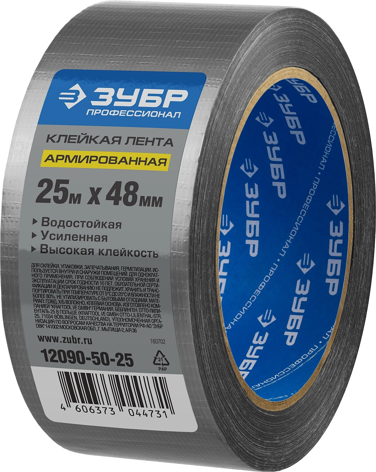 ПроизводителиЛента клеящая водозащитная армированная, универ. 48мм/25м, серебр. "Профессионал" (12090-50-25) ЗУБР