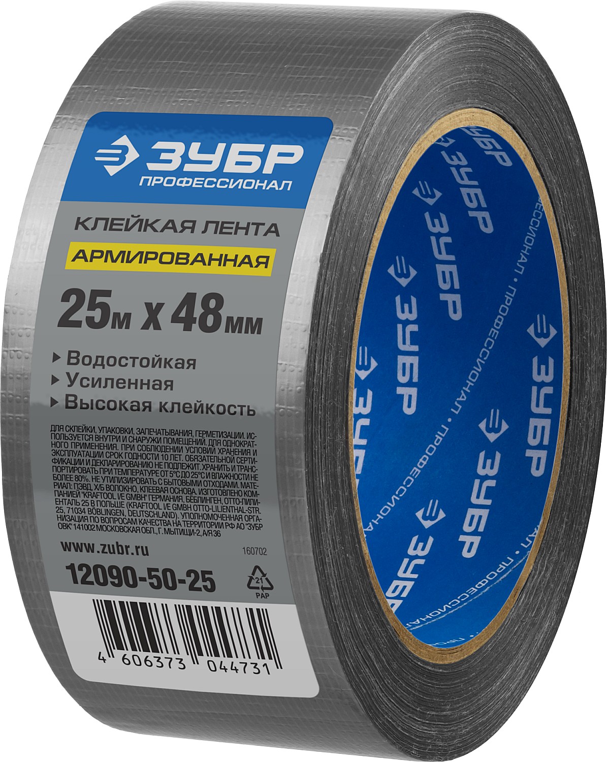 ПроизводителиЛента клеящая водозащитная армированная, универ. 48мм/25м, серебр. "Профессионал" (12090-50-25) ЗУБР