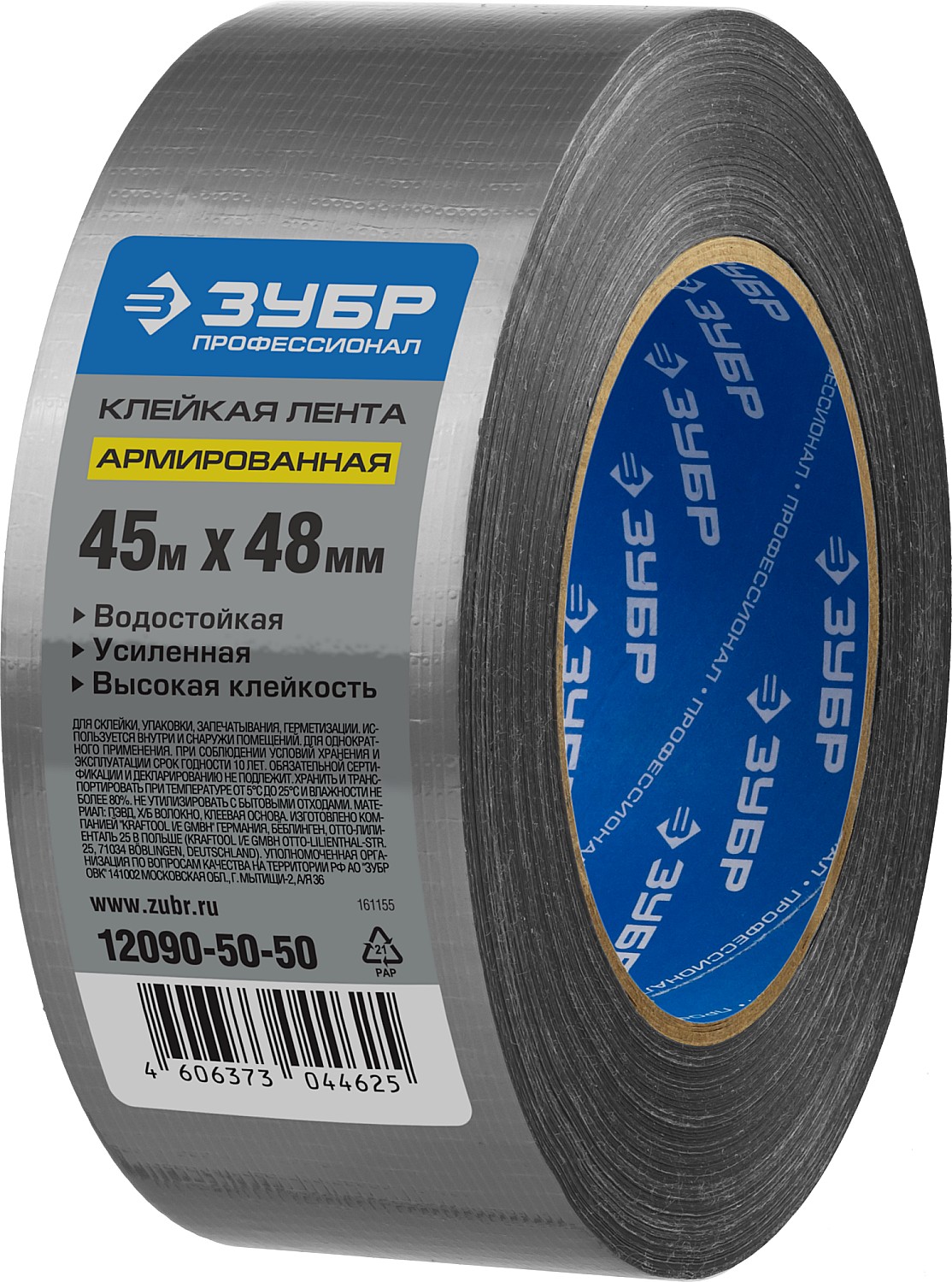 ПроизводителиЛента клеящая водозащитная армированная, универ. 48мм/45м, серебр. "Профессионал" (12090-50-50) ЗУБР