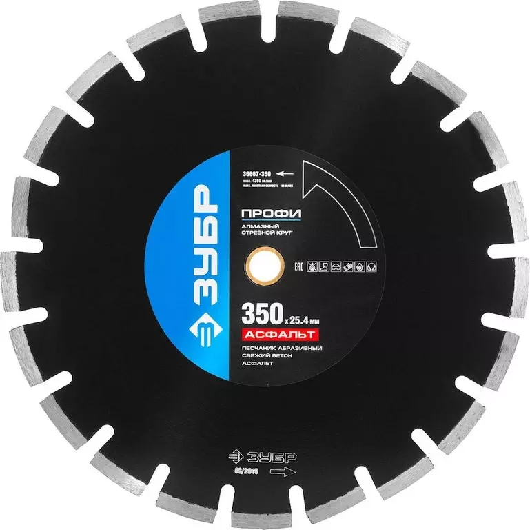 ПроизводителиКруг алмазный сегм. 350х10х25,40 Асфальт "ПРОФЕССИОНАЛ" (36667-350) ЗУБР