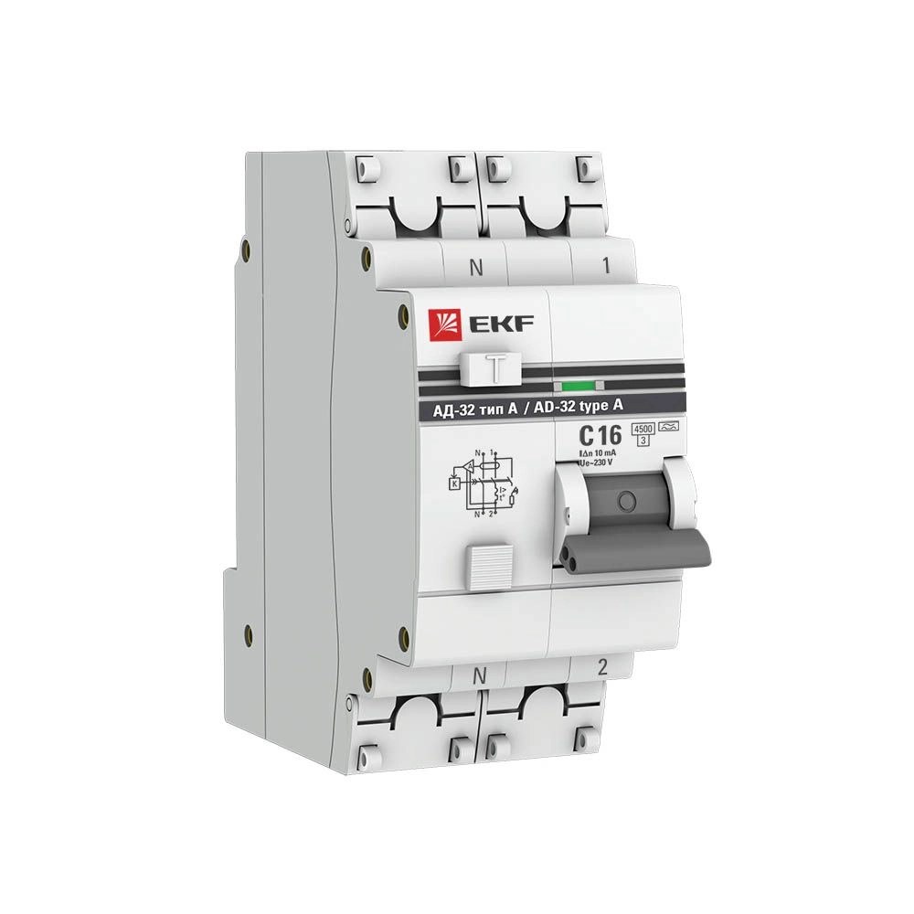 ПроизводителиАвтомат дифференциальный АД-32 (230/400В 1P+N 16А/10мА (А) 45кА) DA32-16-10-a-pro EKF PROxima