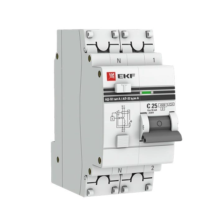 ПроизводителиАвтомат дифференциальный АД-32 (230/400В 1P+N 25А/30мА (B) 45кА) DA32-25-B-30-pro EKF PROxim