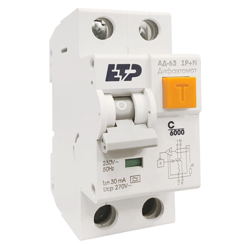 ПроизводителиАвтомат дифференциальный АД-63 (230В 1P+N 06A/30мА (C) 6кА) 19051 ETP
