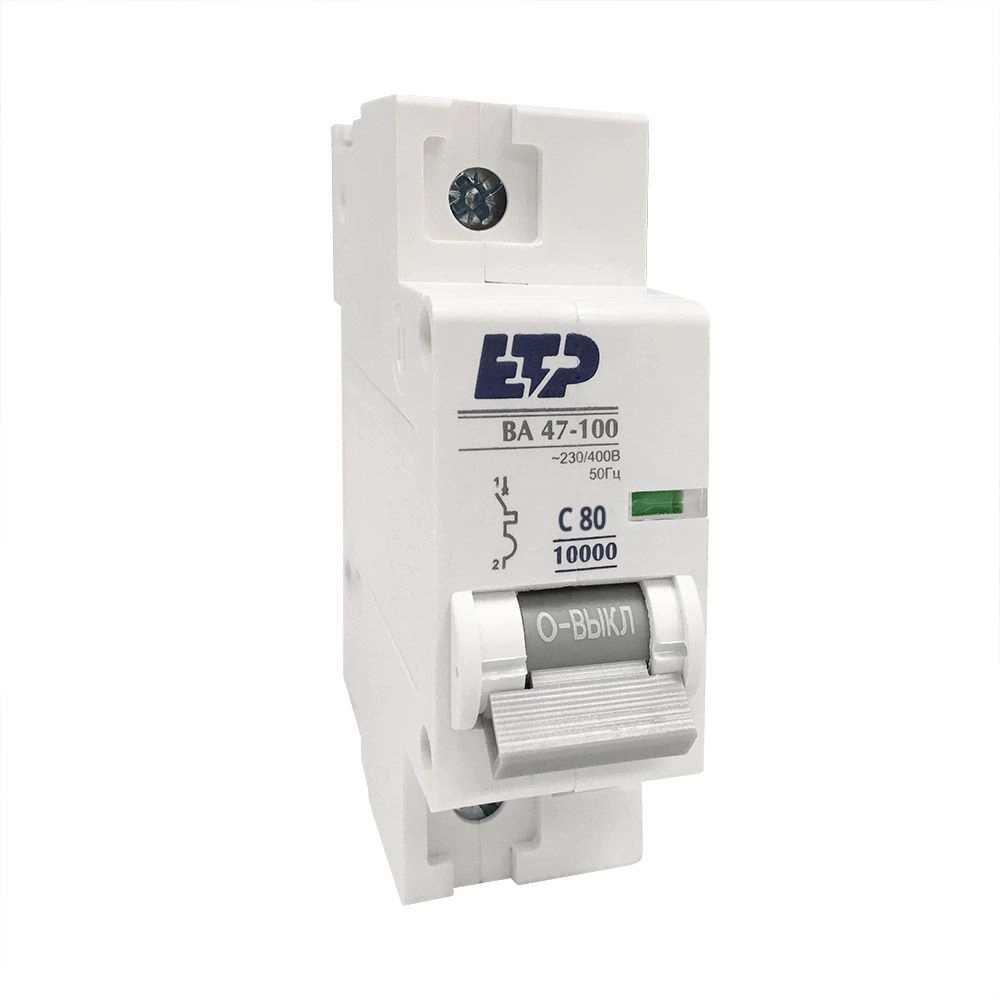 ПроизводителиАвтоматический выключатель ВА 47-100, 1P 80А (C) 10кА ETP