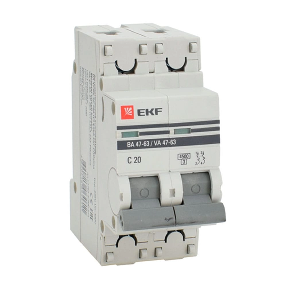 ПроизводителиАвтоматический выключатель ВА 47-63, 2Р 20А (C) 4,5кА EKF PROxima