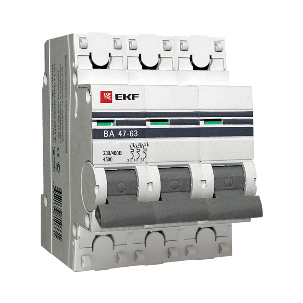 ПроизводителиАвтоматический выключатель ВА 47-63, 3Р 20А (C) 4,5кА EKF PROxima
