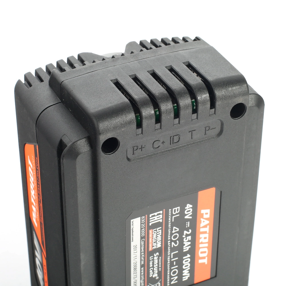 ПроизводителиБатарея аккумуляторная BL402 (40В, 2.5Ач Li-ion слайдер) PATRIOT