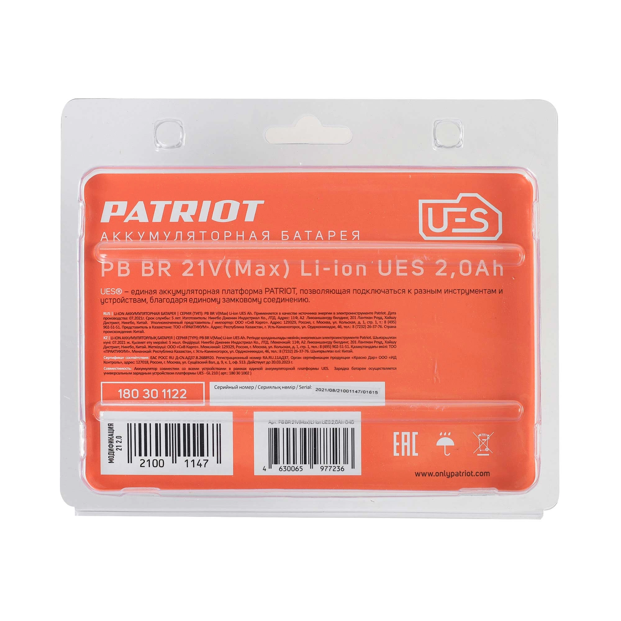 ПроизводителиАккумулятор 21В 1шт. 2.0 А/ч Li-ion BR 21 V Max UES PATRIOT