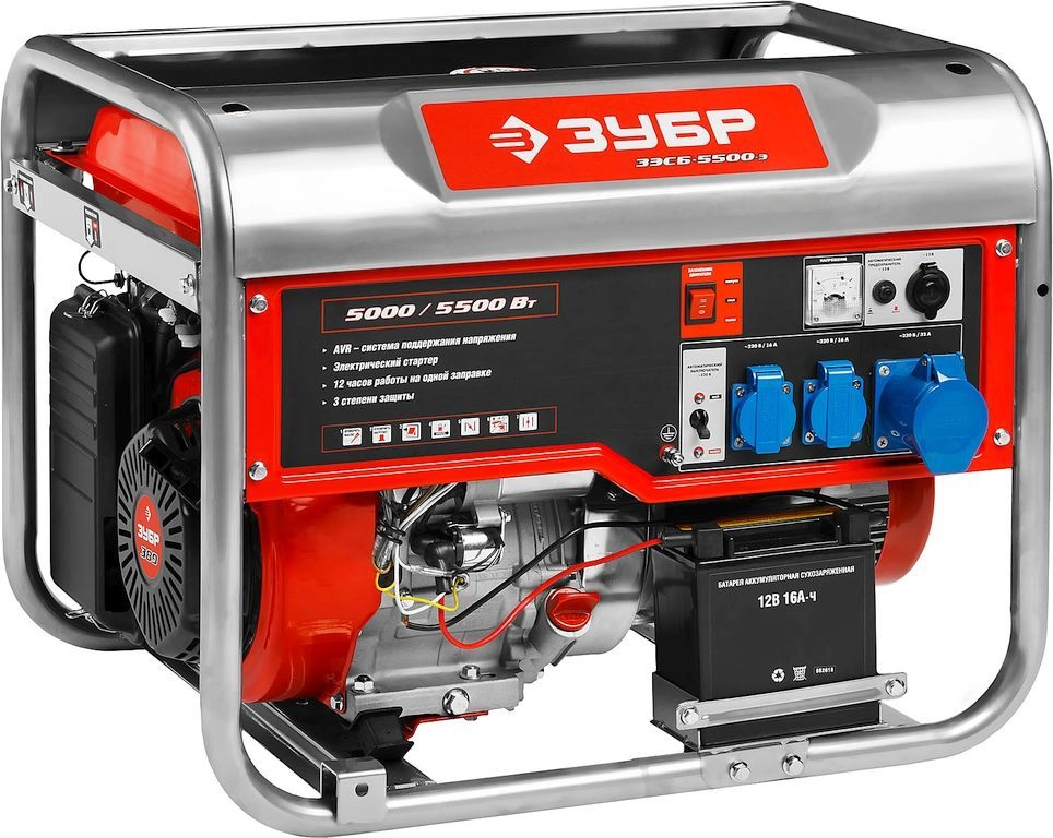 ПроизводителиГенератор бензиновый с электростартером ЗЭСБ-5500-Э, 5500Вт ЗУБР