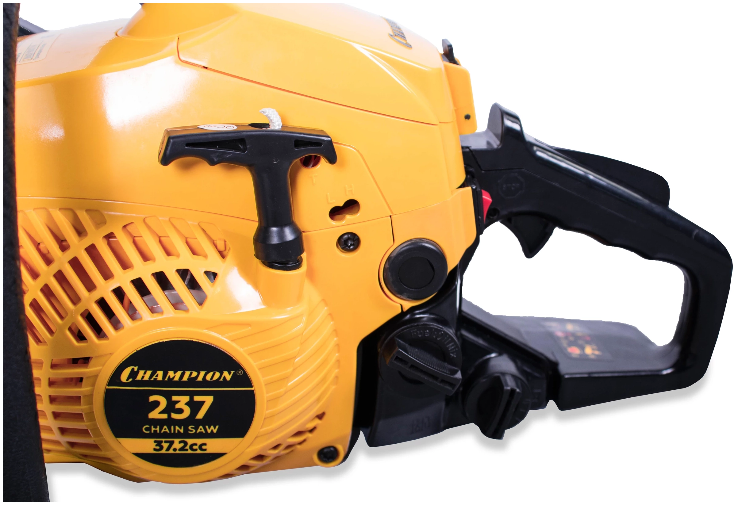 ХарактеристикиАртикул 237-16Бренды CHAMPIONСтрана производства КитайГарантия 12 месяцевТип бензиноваяДлина цепи 40Объем топливного бака, л 0,31Мощность, л.с. 2.04Ширина паза 1.3Назначение бытоваяЦвет черный/желтыйМатериал корпуса металл/пластикОбъём двигателя 37.2Количество звеньев цепи 56Тип двигателя двухтактныйВес 4.7Двигатель бензиновыйДлина шины 40Ширина паза 1.3Емкость топливного бака 0.31Емкость масляного бака 0.21Шаг цепи 3.8Тормоз цепи естьАнтивибрация естьЛегкий пуск естьОбороты холостого хода 3000Количество звеньев цепи 56Топливо бензин АИ-92 с маслом для двухтактных двигателейШирина в упаковке 26.1Высота в упаковке 30.8Глубина в упаковке 44.9Свеча зажигания L7TОписание товара обновлено 08.12.2025 14:38:49Мощность двигателя, (кВт/л.с) - 1,5/2,04 Вес, без шины и цепи с пустыми баками, (кг) - 4,7 Объем двигателя, (см3) - 37,2 Объем топливного бака, (л) - 0,31 Объем масляного бака, (л) - 0,21 Длина шины, (дюйм/см) - 16/40 Шаг пильной цепи, (дюймы) - 3/8 Ширина паза пильной шины, (мм) - 1,3 Количество звеньев цепи, (шт.) - 56 Максимальные обороты без нагрузки, (об/мин) - 11500 Обороты холостого хода, (об/мин) - 3000 Уровень вибрации передней/задней рукоятки, (м/с2) - 8,0/6,4 Уровень мощности звука, (дБ) - 110 Комплектация Бензопила; Пильная шина; Цепь; Свечной ключ; Отвертка для настройки карбюратора; Инструкция; Упаковка.Производитель: Tenneco, Powertrain Division
