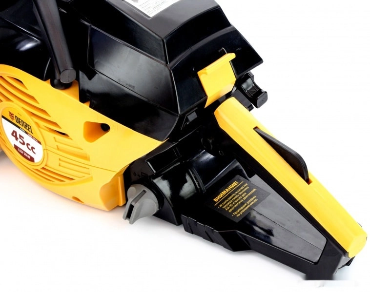 Безопасность пользователя — специальный щиток и автоматический тормоз цепи уменьшают риск получения травм при отскоке пилы, также предусмотрена защита от случайного пуска.