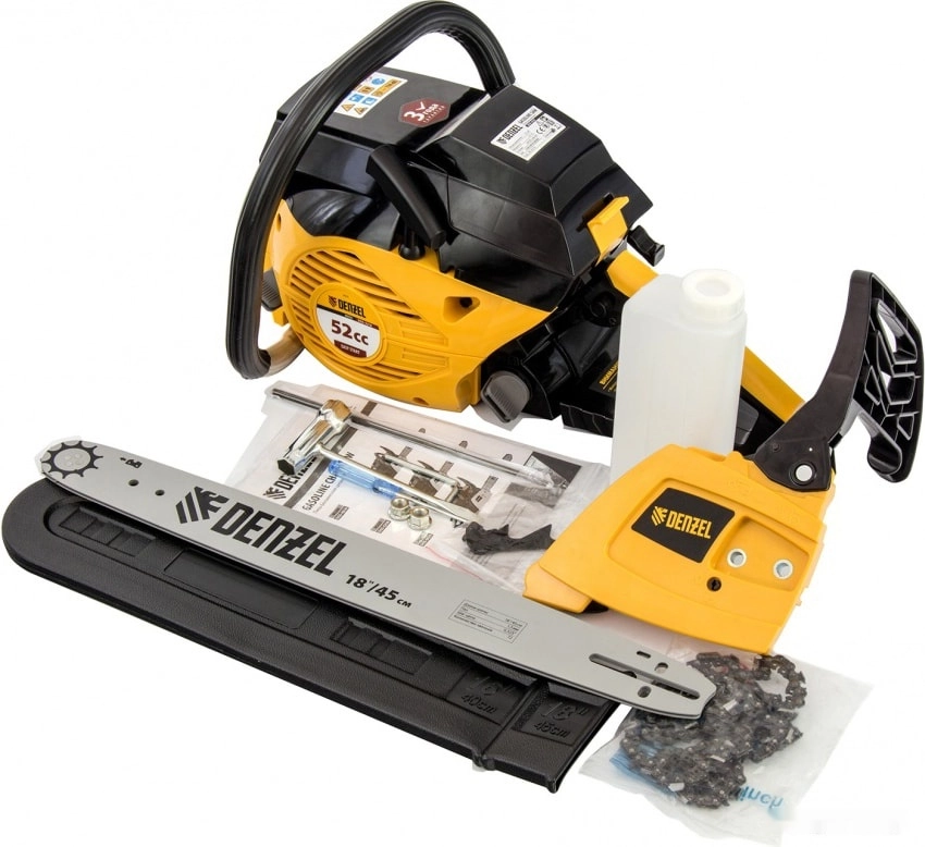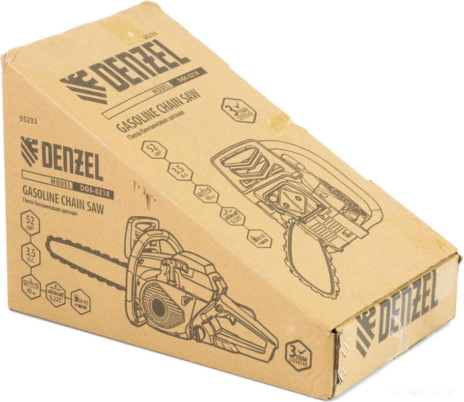 ПроизводителиБензопила DGS-5218, шина 45 см, 52см3, 3,5 л.с., шаг 0,325, паз 1,5 мм, 72 зв Denzel