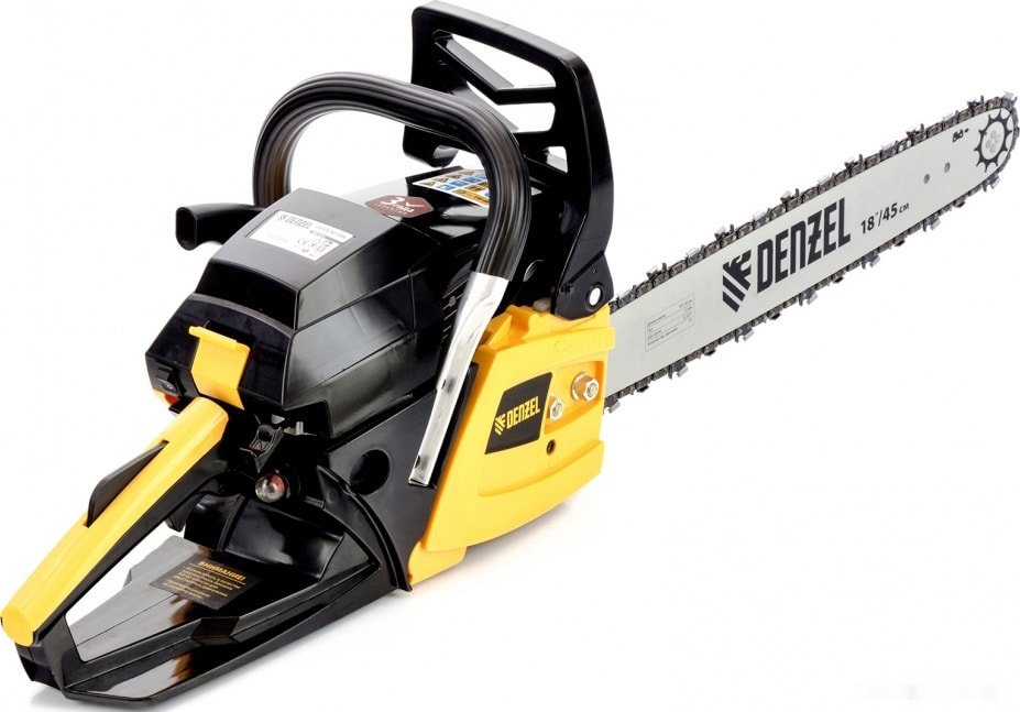 ХарактеристикиАртикул 95233Бренды DENZELСтрана производства КитайОписание товара обновлено 11.09.2025 11:56:20Пила цепная бензиновая Denzel DGS-5218 95233 с двигателем объемом 52 см3 и мощностью 3,5 л.