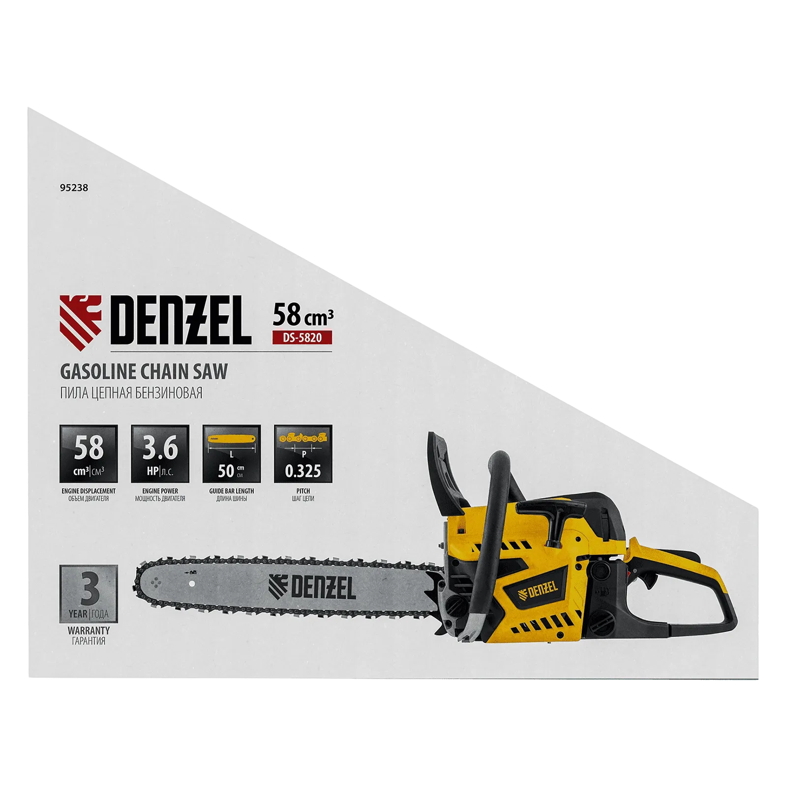 Бензопила DS-5820, шина 50 см, 58см3, 3,6 л.с., шаг 0,325, паз 1,5 мм, 76 зв DenzelПРОФИУровень качества. При классификации продуктов, имеющих схожее наименование, но обладающие различными потребительскими свойствами мы приняли следующий Вес факторов: 80% - подтвержденный ресурс, 15% - заявленная производительность/скорость, 5% - субъективные ощущения потребителя. ПодробнееКод товара: 0080782(0)374.02 руб. Скидка только для физ. лиц 4% 359.05 руб. за шт