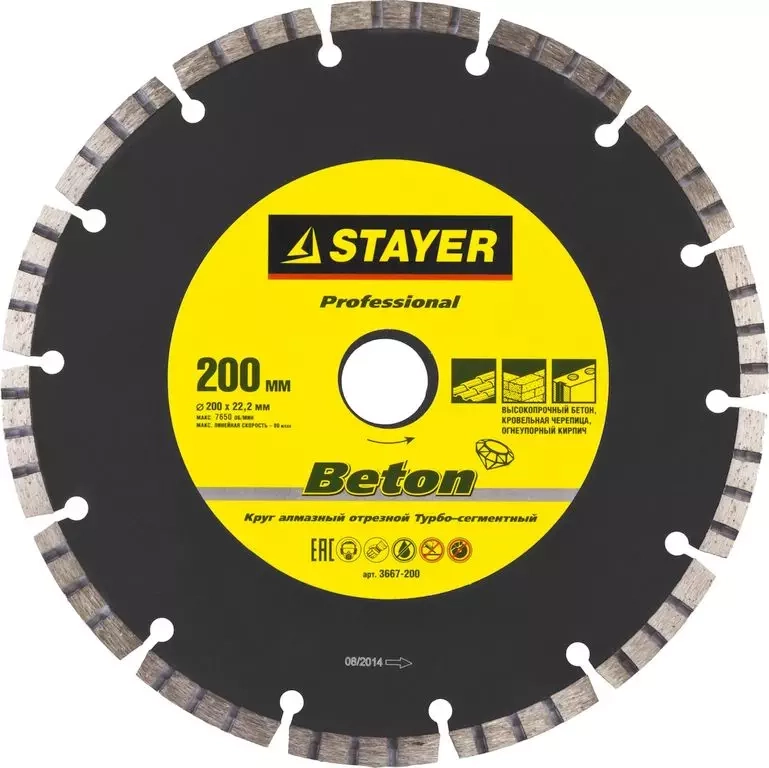 ПроизводителиКруг алмазный сегм. 200x7x22,23мм высокопрочный бетон "Professional" (3667-200) STAYER
