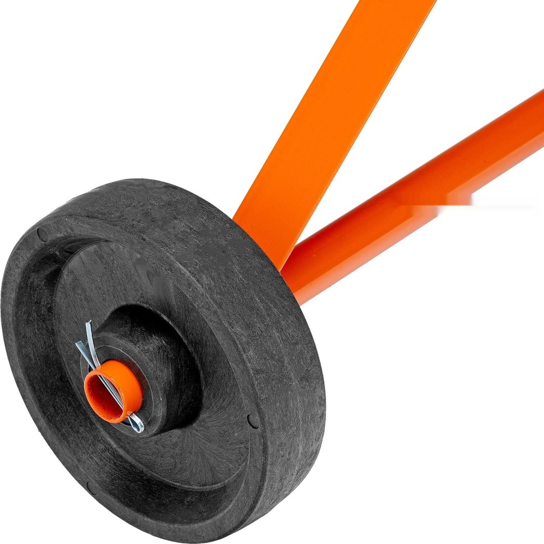 - Удобная загрузка и выгрузка смеси — барабан наклоняется при помощи маховика и легко фиксируется в нужном положении.