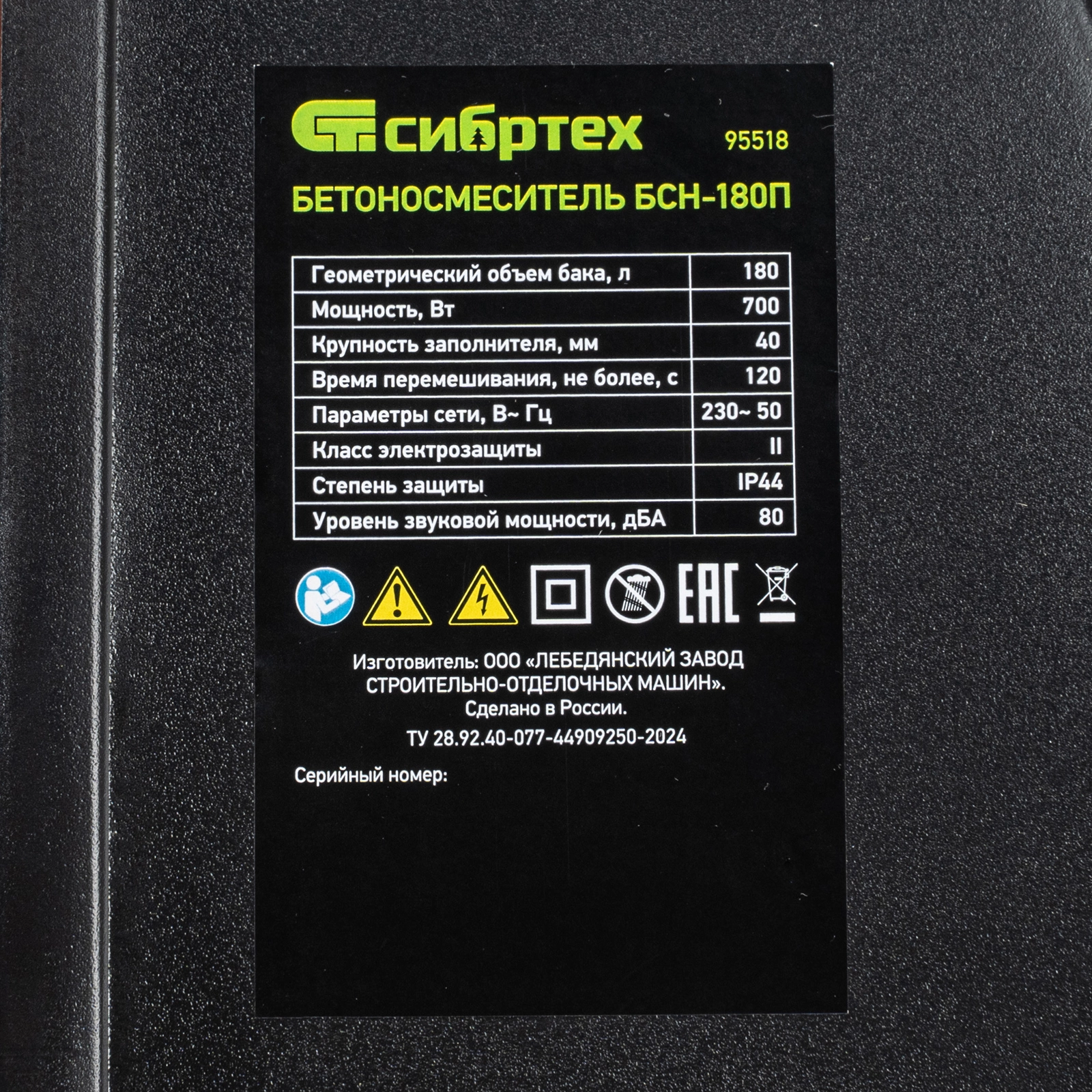 ПроизводителиБетоносмеситель БСН-180П, мощность 700 Вт, полиамидный венец Сибртех