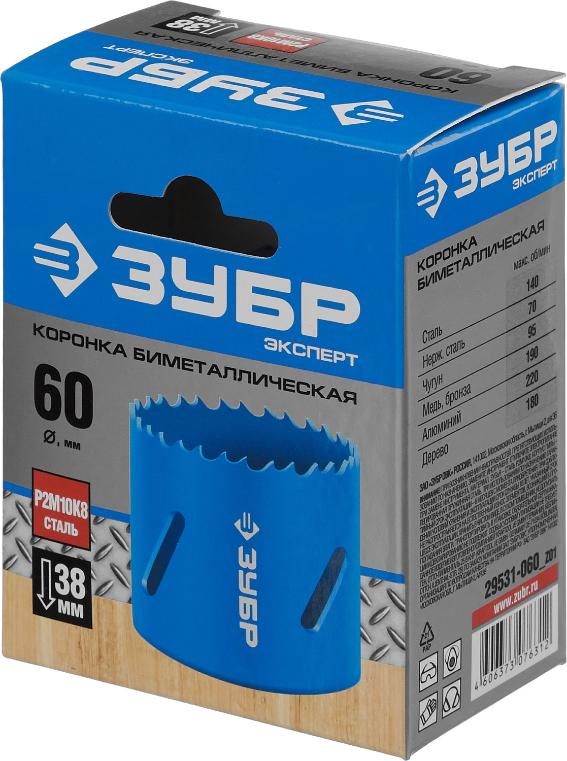 ПроизводителиКоронка биметаллическая 60мм, HSS-Co "ЭКСПЕРТ" (29531-060_z01) ЗУБР