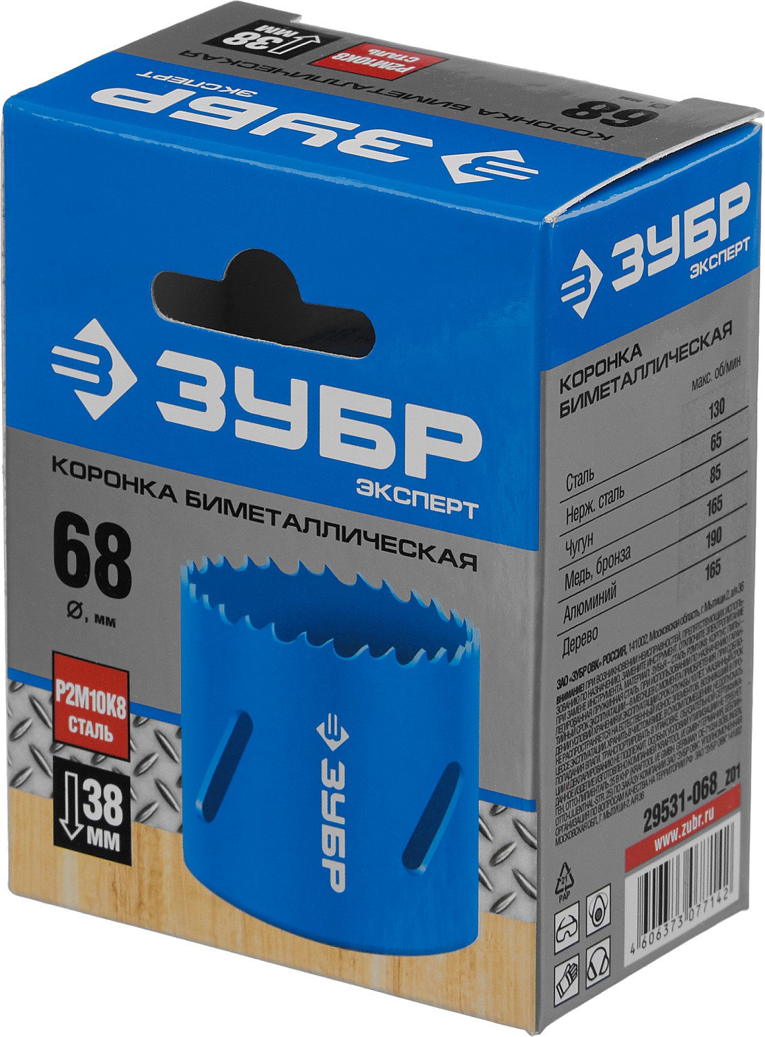 ПроизводителиКоронка биметаллическая 68мм, HSS-Co "ЭКСПЕРТ" (29531-068_z01) ЗУБР