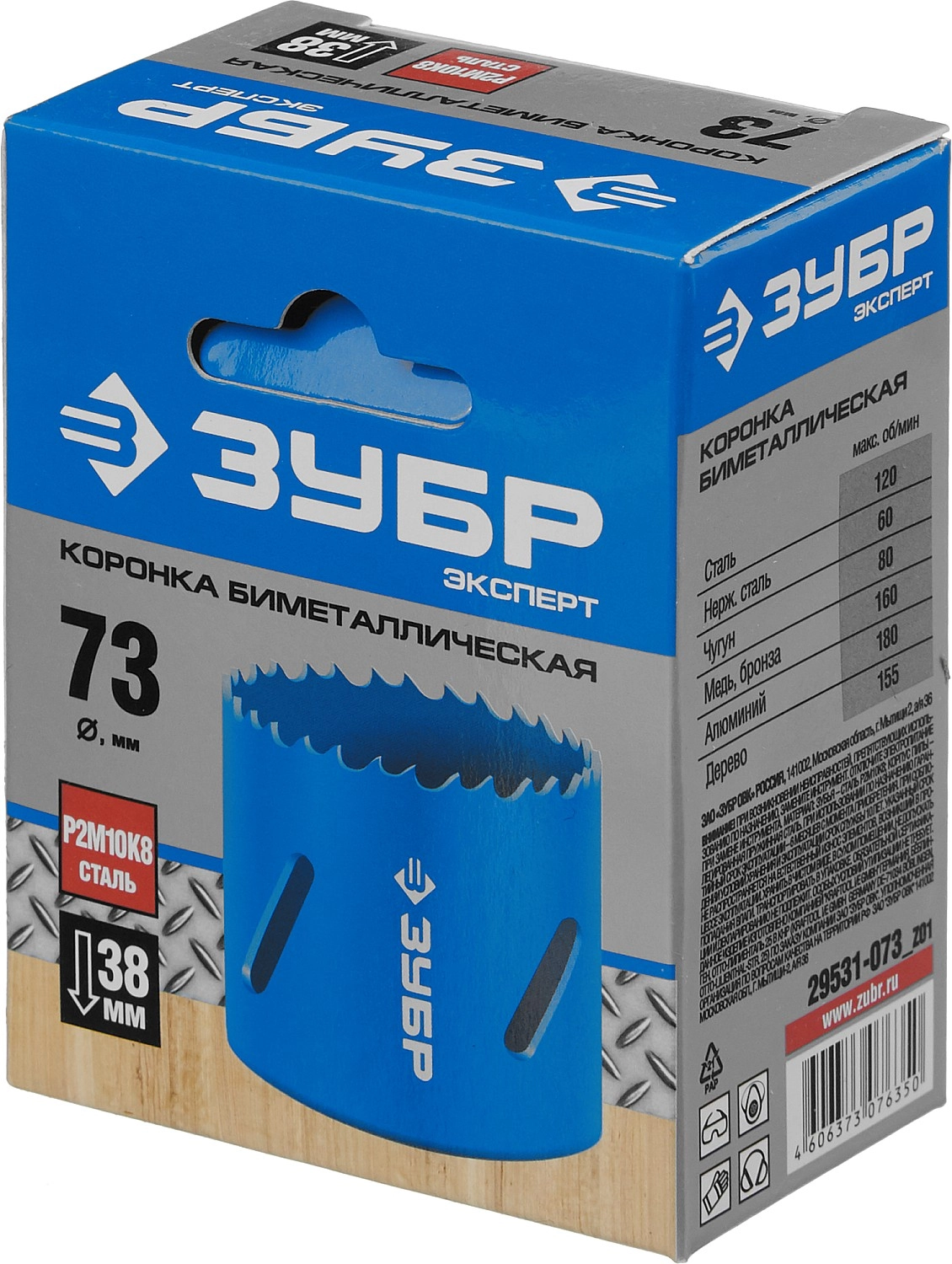 ПроизводителиКоронка биметаллическая 73мм, HSS-Co "ЭКСПЕРТ" (29531-073_z01) ЗУБР