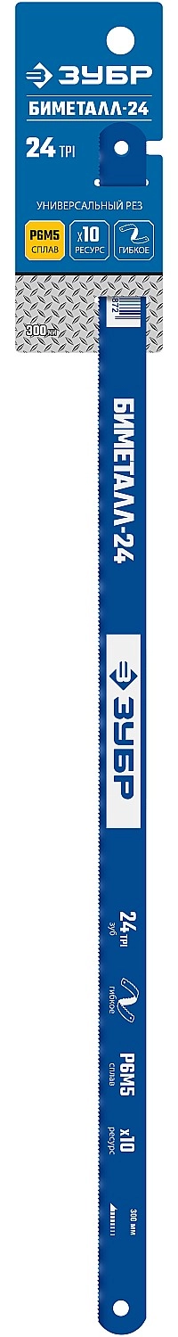 ПроизводителиПолотно биметаллическое по металлу, 24 TPI: универсальный рез, 300 мм, HSS (15855-24-1) ЗУБР