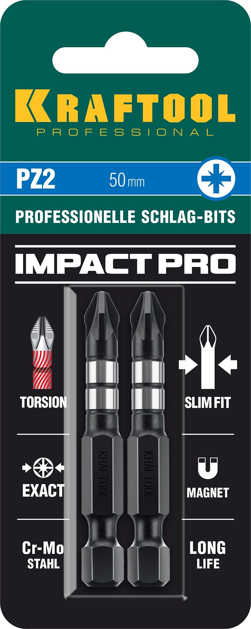 ПроизводителиБита PZ2 L= 50 мм, ударная, 1/4", 2 шт. "Impact Pro" (26193-2-50-S2) KRAFTOOL