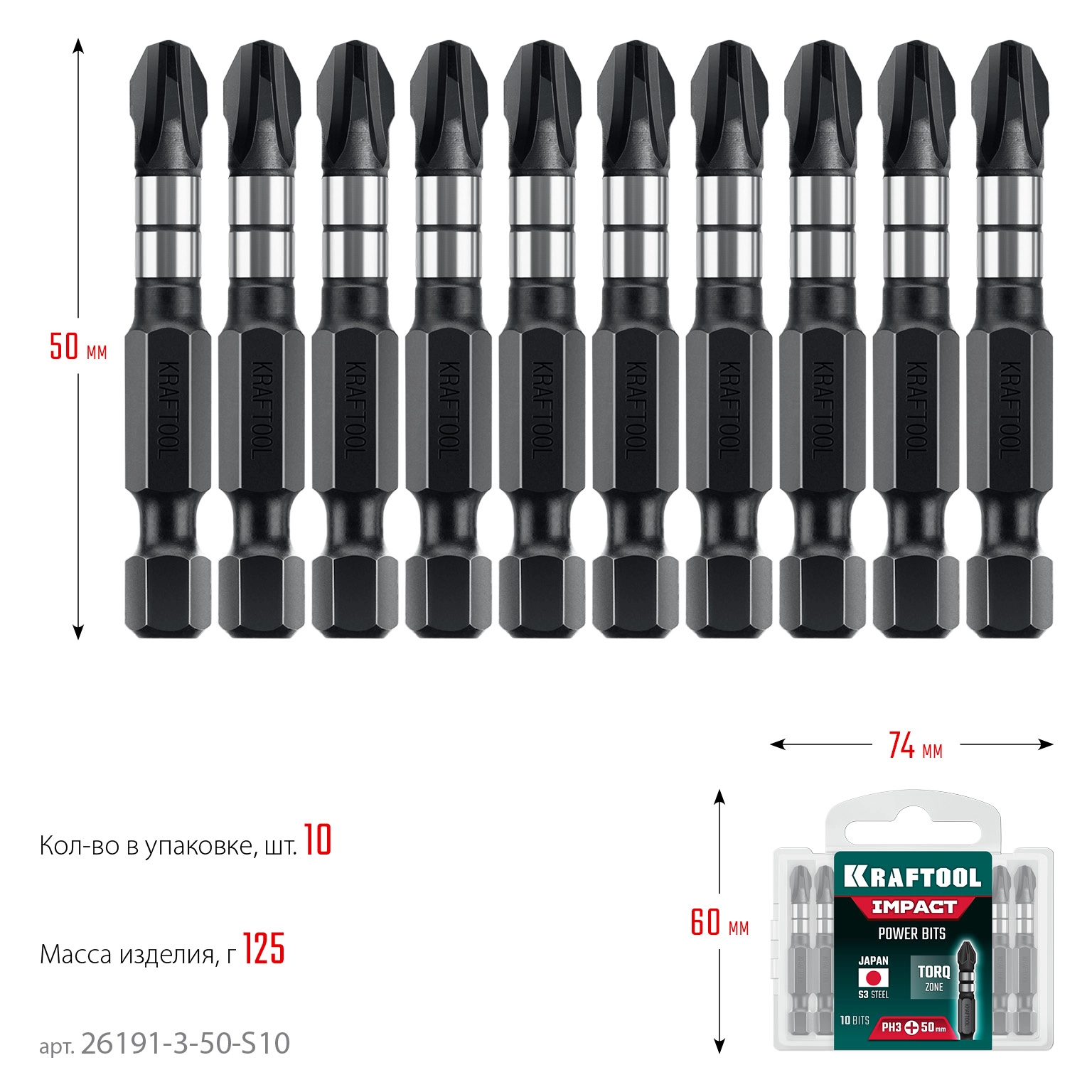 ПроизводителиБита ударные Impact PH 3, 50мм, 10 шт (26191-3-50-S10) KRAFTOOL