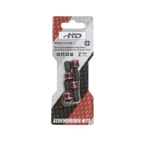 ПроизводителиБиты крестообразные PH2х25мм с магнитным кольцом 1/4" S2 (4шт) (HD-77872M) H-D
