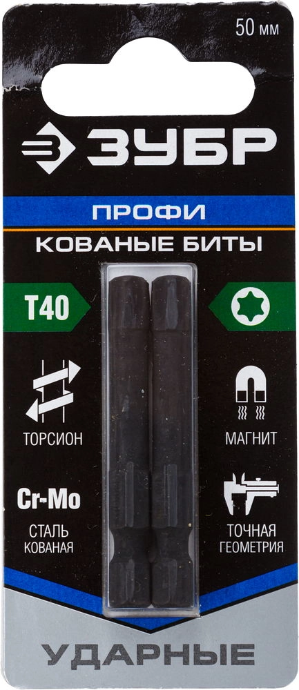 ПроизводителиБиты "ПРОФИ" TORX, тип хвостовика E 1/4", T40, 50мм, 2шт, на карточке (26025-40-50-S2) ЗУБР