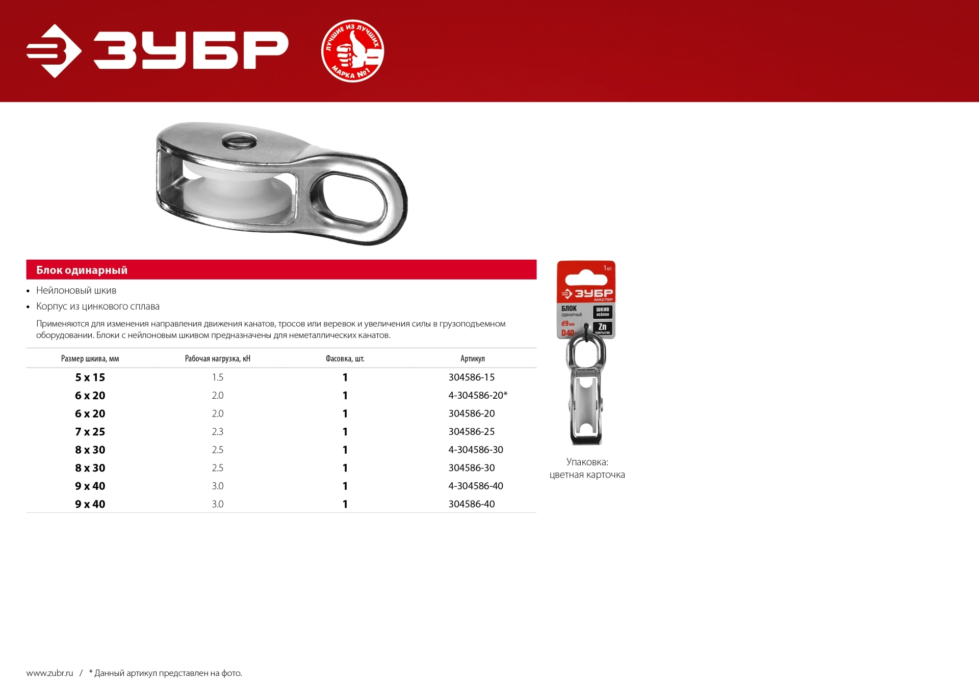 ПроизводителиБлок одинарный 7х25мм, 1 шт (304586-25) ЗУБР