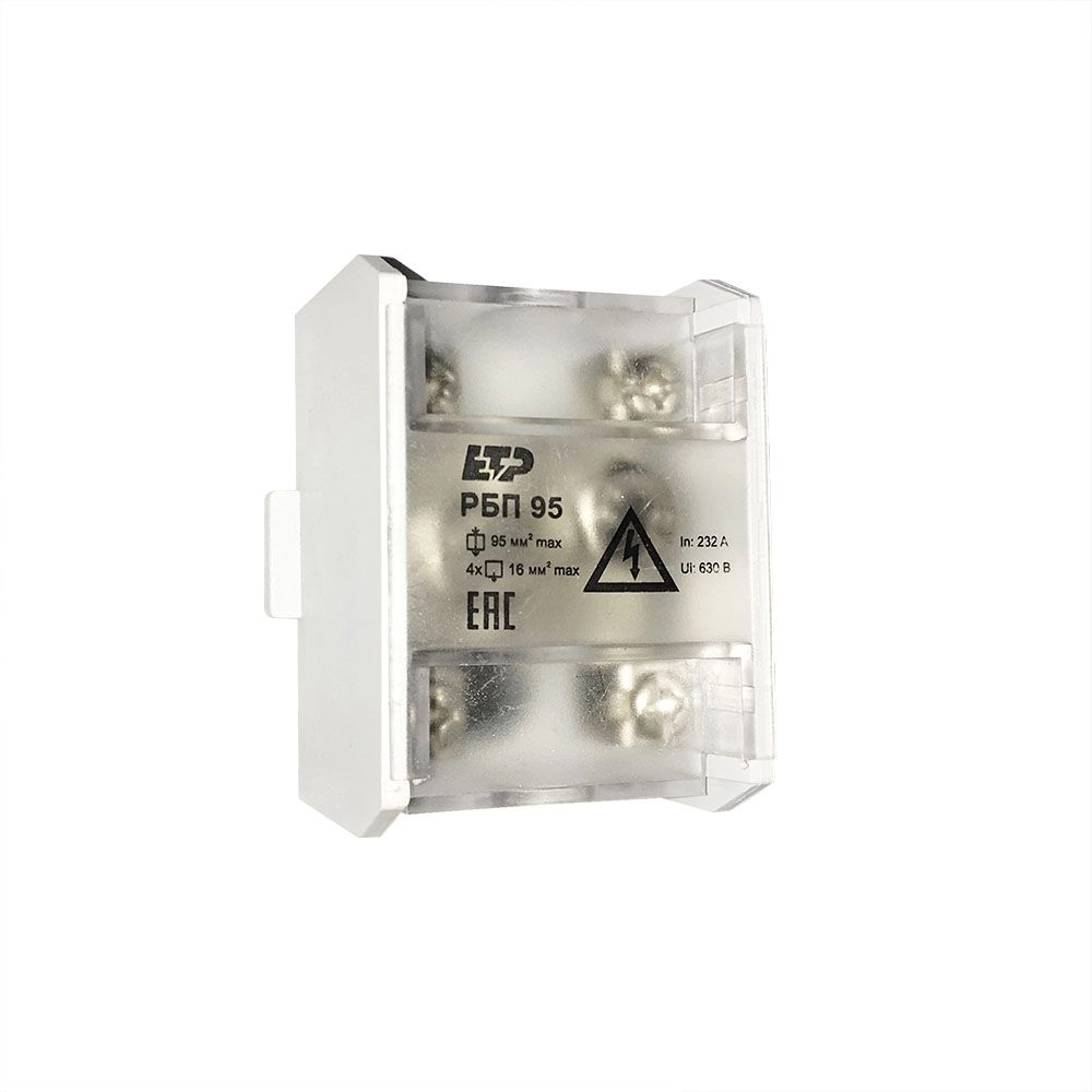 ПроизводителиБлок распределительный проходной РБП 95 (1х95-4х16 мм2) 232/100А ETP