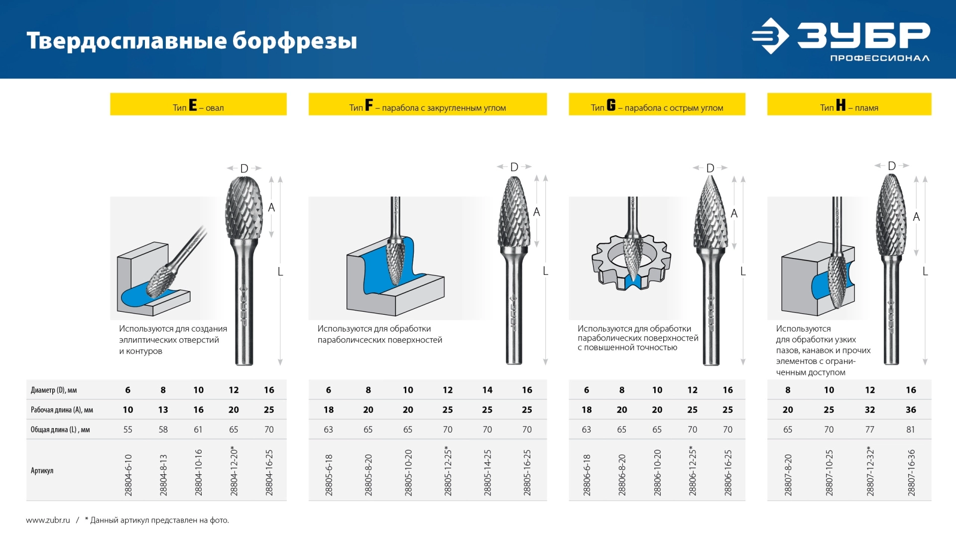 Твердосплавные борфрезы ЗУБР обеспечивают высокую производительность и могут использоваться для обработки различных материалов